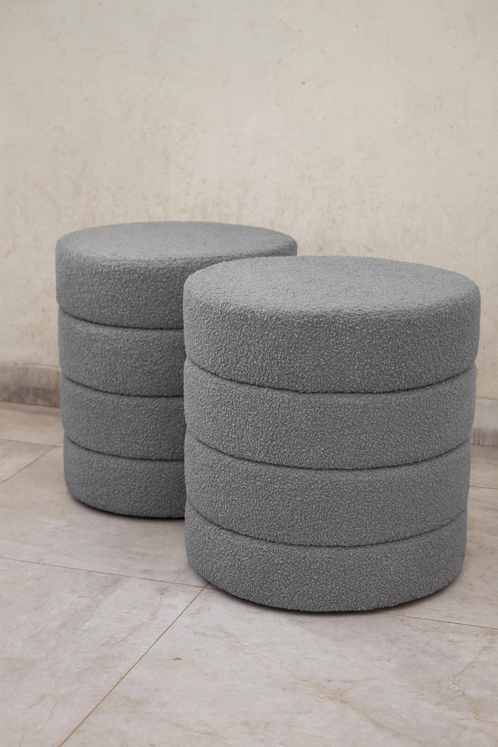 Bring comfort, texture, and modern elegance into your home with the Boucle Premium Round Stool Grey 0010 — compact, cozy, and stylish.