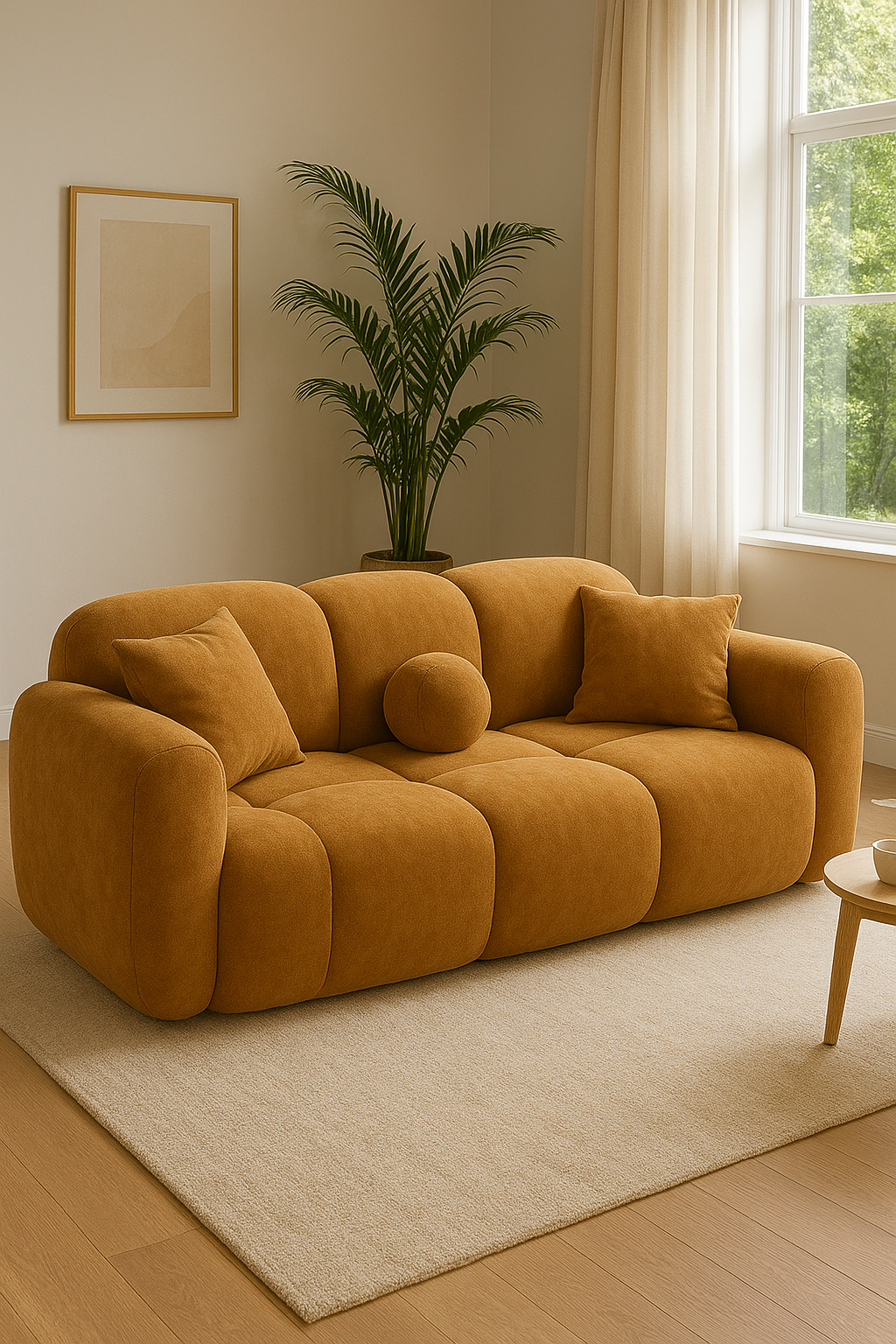 The Bubble Sofa is designed to make a bold statement while ensuring maximum comfort. With its plush boucle fabric, solid wood frame, and molty foam cushioning, it’s the perfect blend of durability, coziness, and aesthetic appeal.