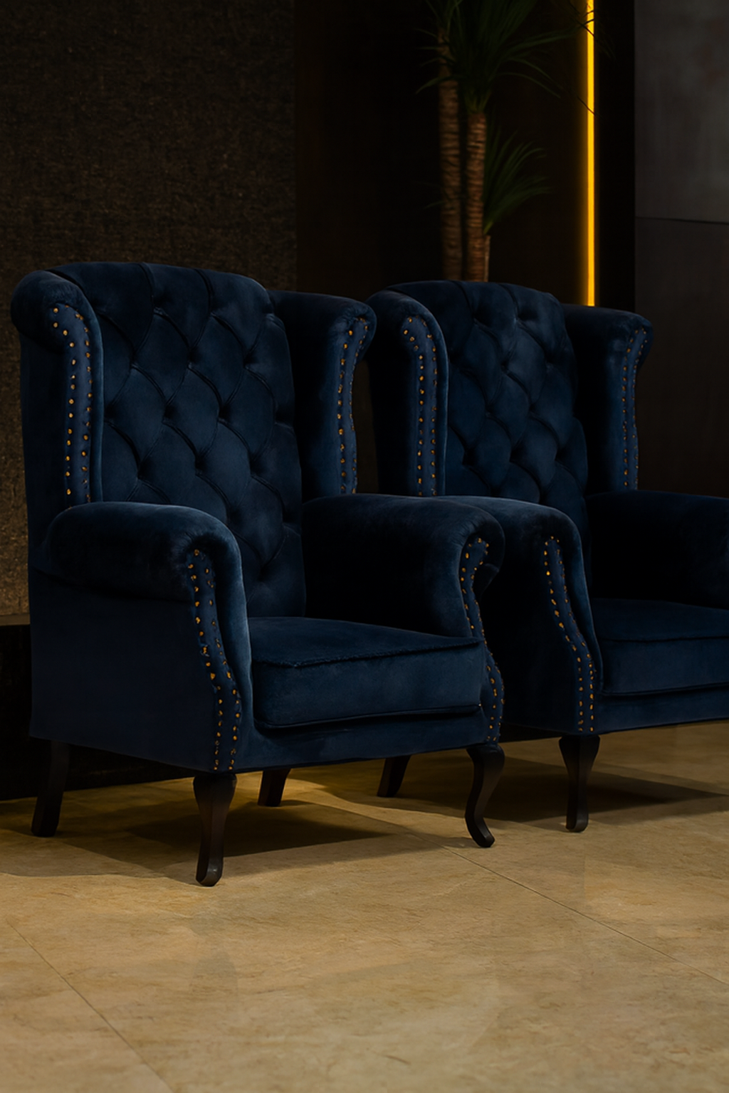 We use solid wood, engineered wood, velvet, suede, glass, metal, and brass — each piece carefully finished for durability and beauty.