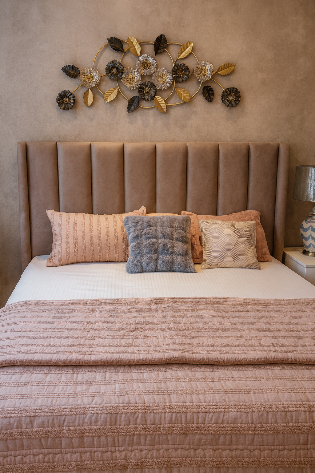 We use solid wood, engineered wood, velvet, suede, glass, metal, and brass — each piece carefully finished for durability and beauty.